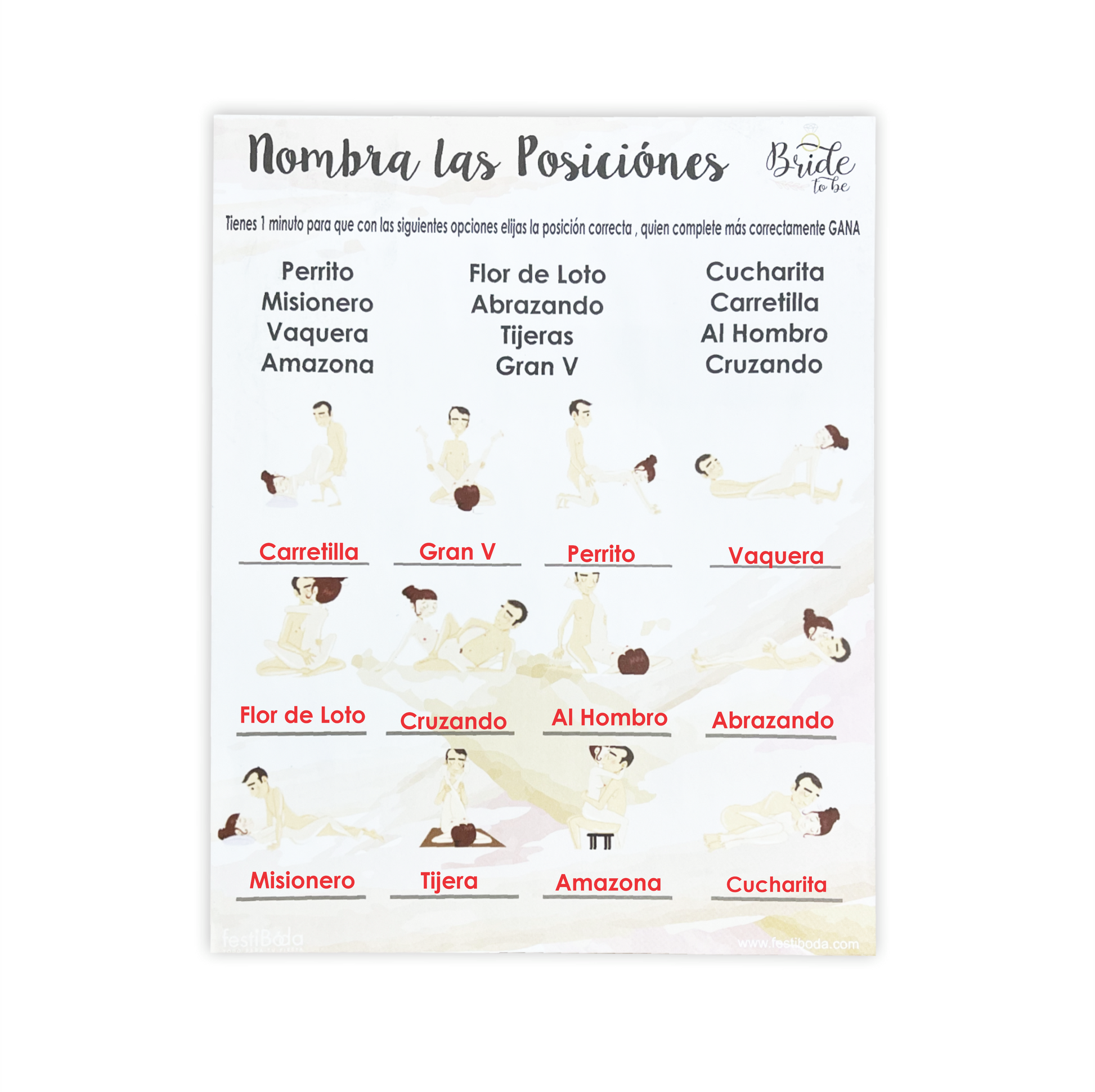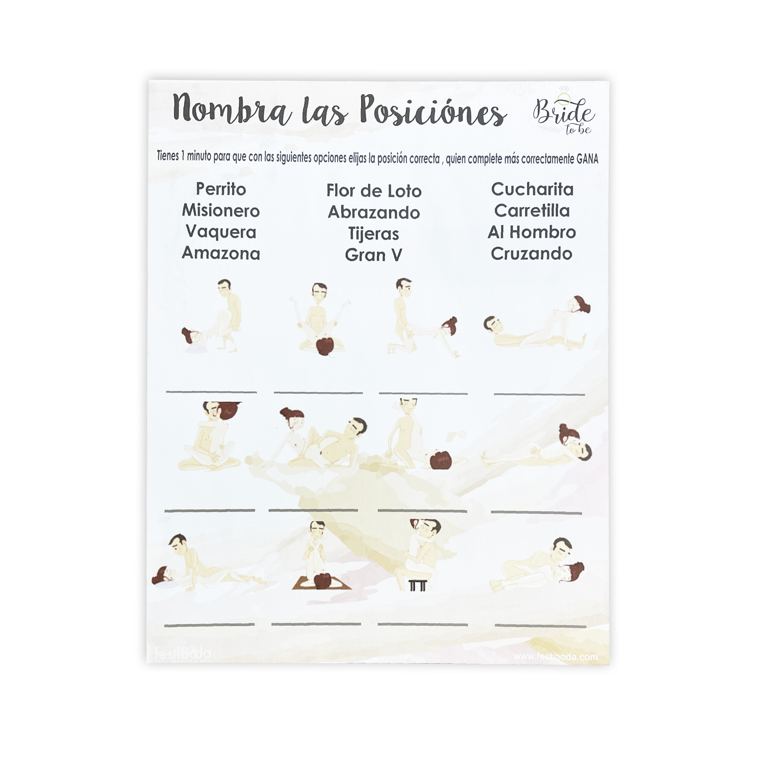 Juego de Papel Despedida NOMBRA LAS POCISIÓNES | Festiboda