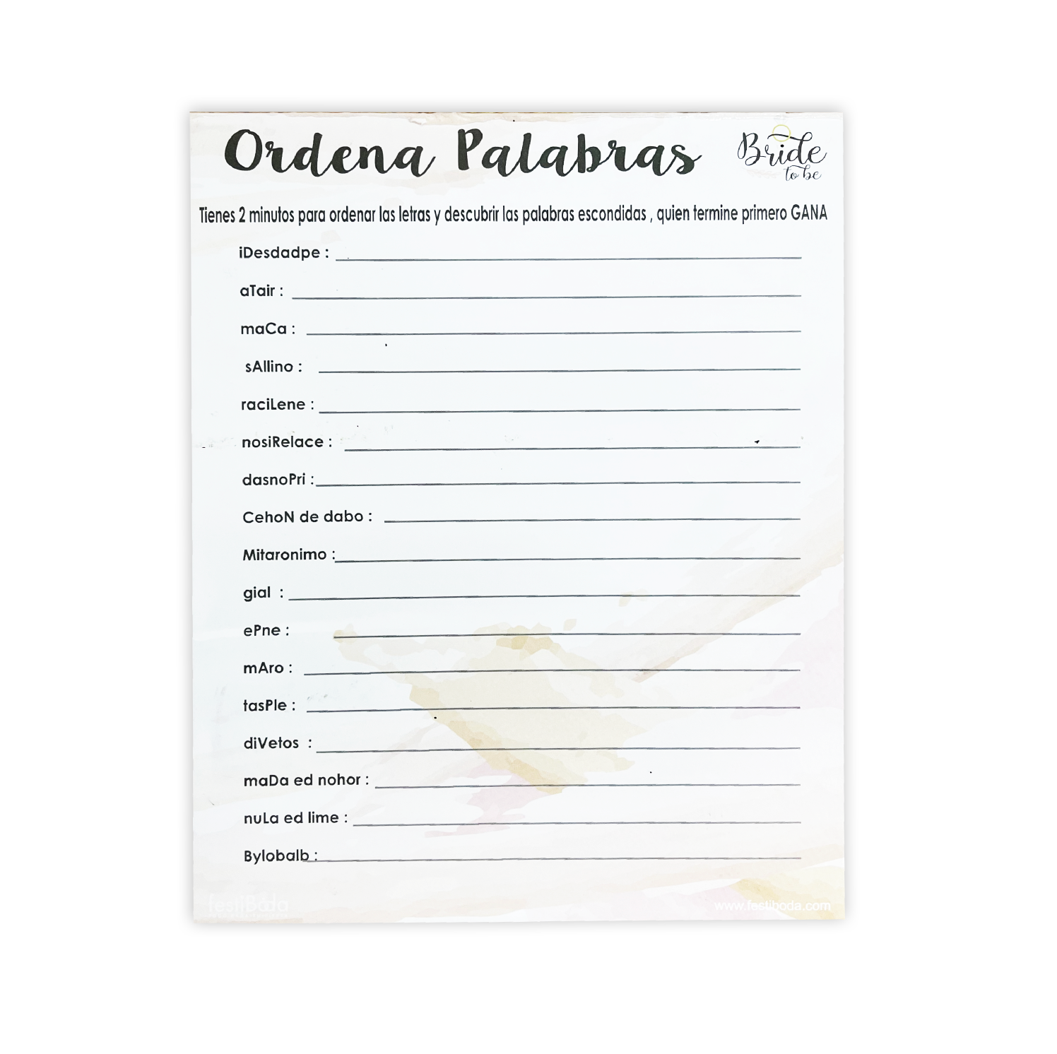 Juego de Papel Despedida ORDENA PALABRAS | Festiboda