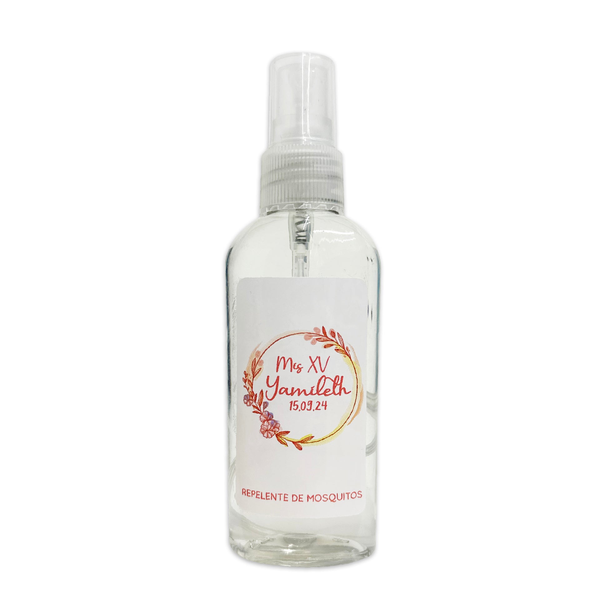 Protege a tus invitados con nuestro repelente de mosquitos transparente con aroma cítrico de citronela 100 % natural. Formato spray que no es viscoso ni pegajoso y puede personalizarse con tu marca o evento.